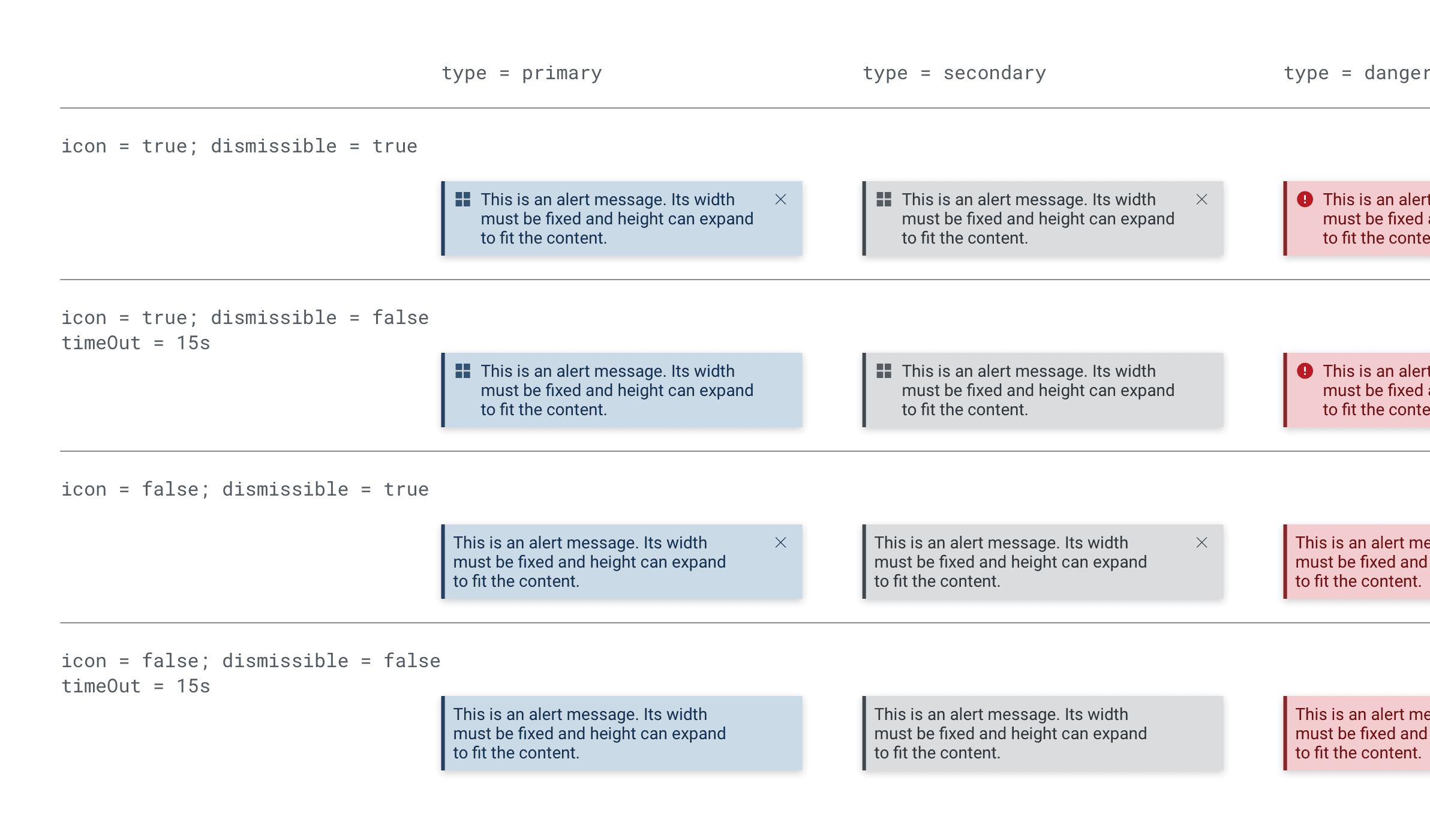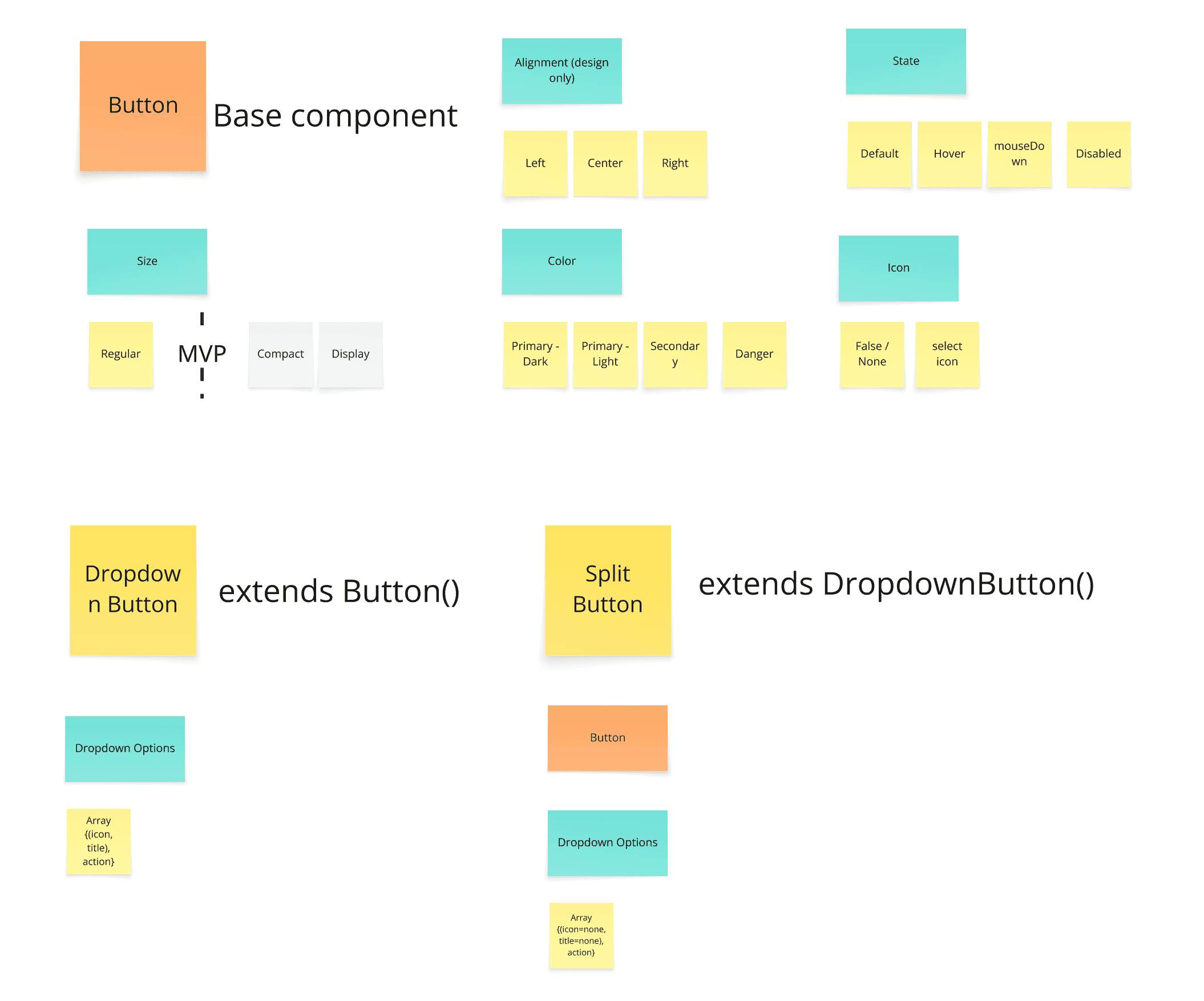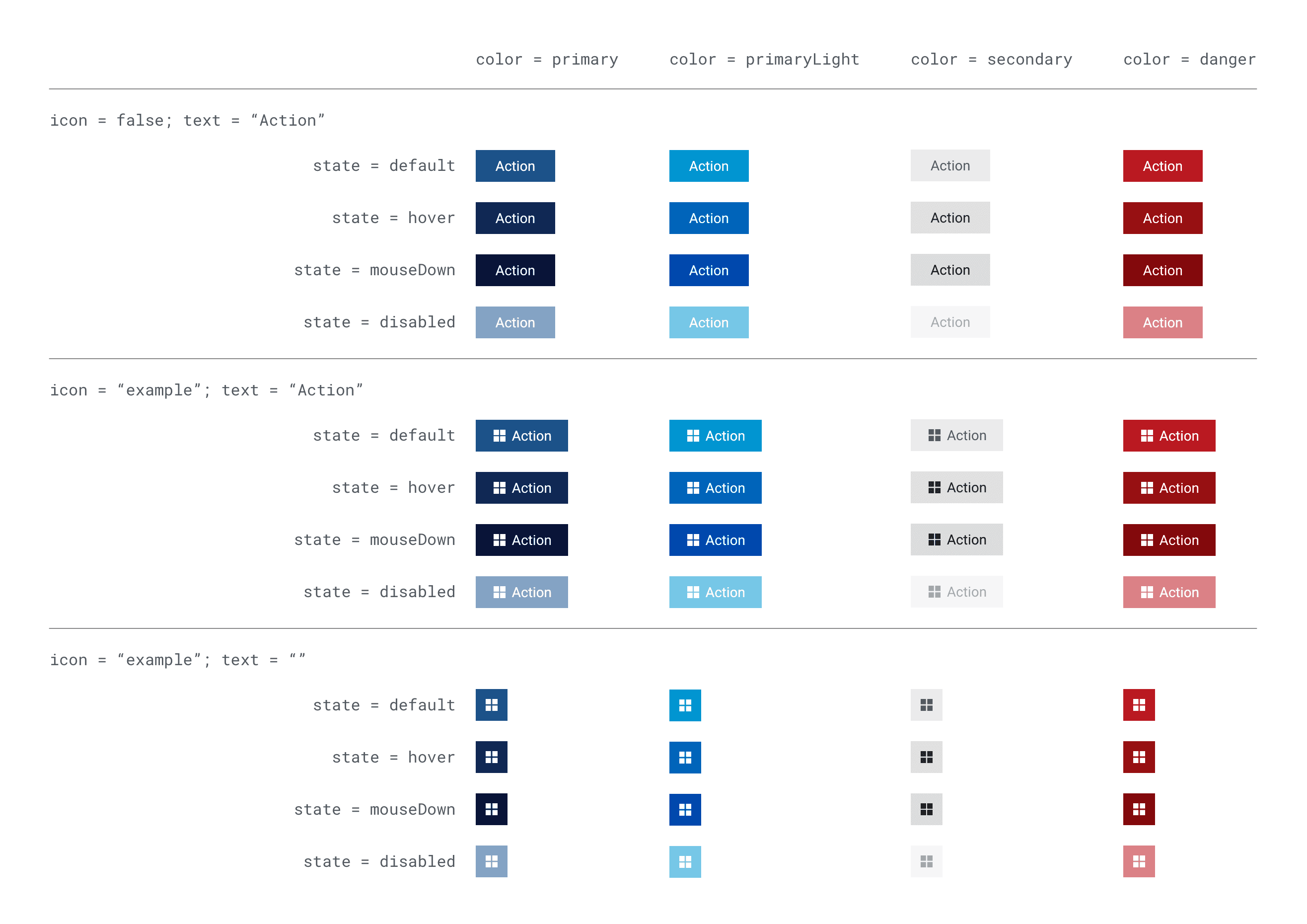 A straightforward example of this is buttons. Rather than having separate components for a text-only button, an icon-only button and a text-and-icon button, I built these as attributes of a button (icon=true/false, label=true/false).
