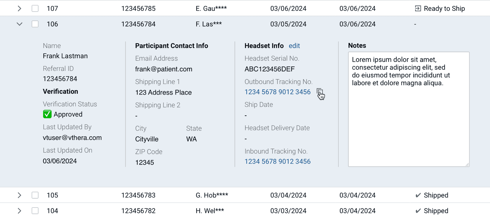 When I joined Virtual Therapeutics as the first and solo UX designer, they had several internal tools for patient management, headset tracking, program monitoring. These were developed in a piecemeal way with no designer involvement.