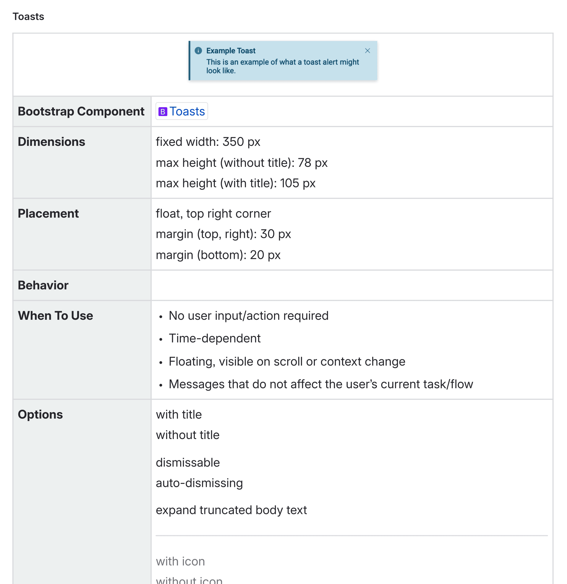 I included usage guidelines for each component so that engineers could quickly choose the right component without waiting for me to get back to them.