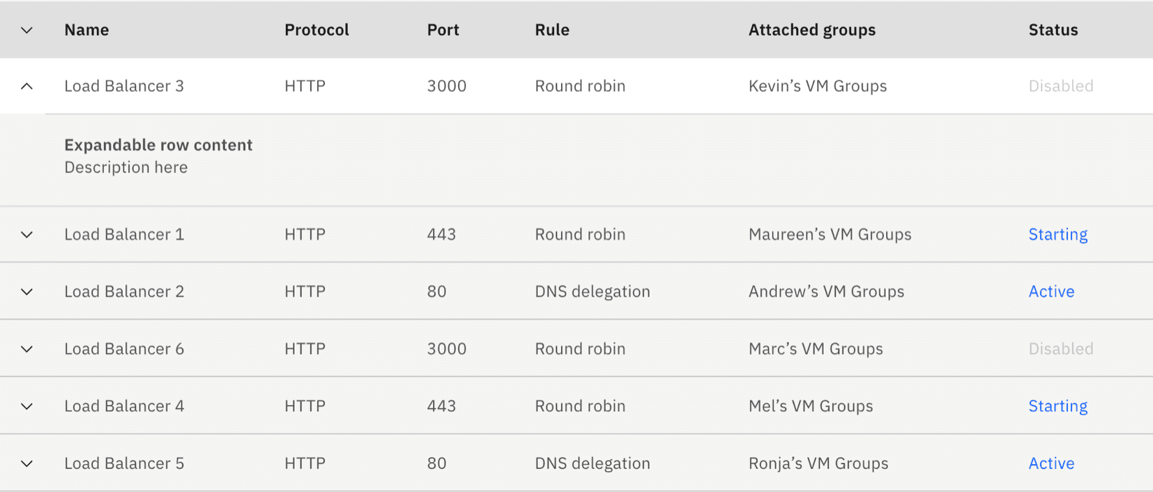 Expandable table row from IBM's Carbon Design System